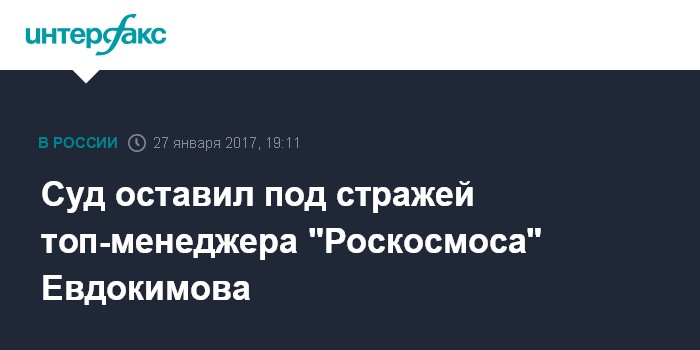 Суд оставил под стражей топ-менеджера "Роскосмоса" Евдокимова