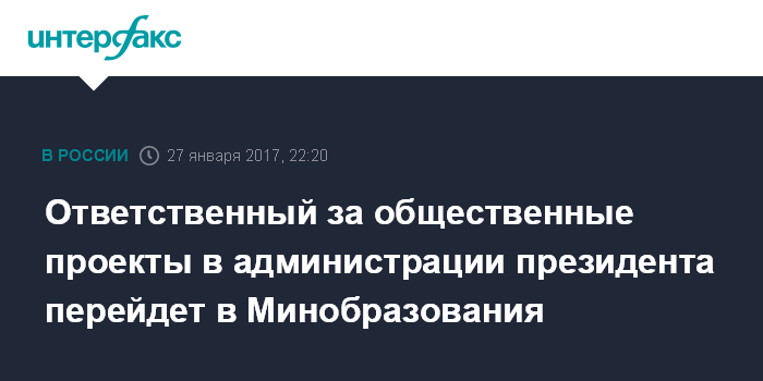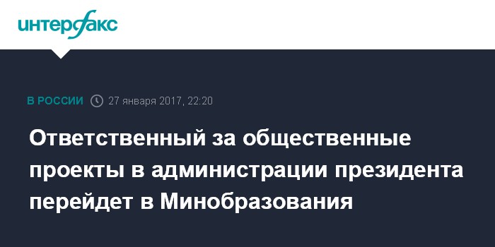 Ответственный за общественные проекты в администрации президента перейдет в Минобразования
