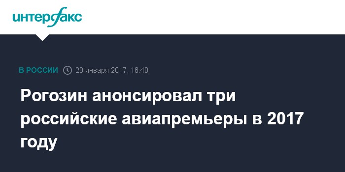 Рогозин анонсировал три российские авиапремьеры в 2017 году