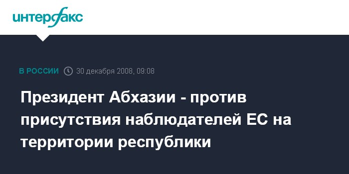Москва. 30 декабря. INTERFAX.RU - Наблюдатели Евросоюза должны проводить мониторинг ситуации в приграничных с Абхазией и Южной Осетией регионах, как об этом сказано в плане урегулирования Медведева-Саркози, заявил президент Абхазии Сергей Багапш.