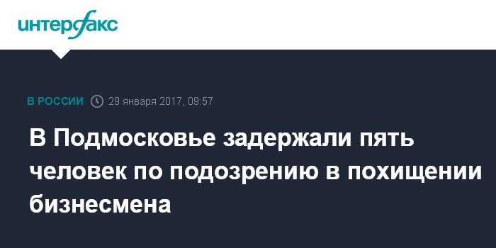Москва. 29 января. INTERFAX.RU - В Шатурском районе Подмосковья задержаны пятеро подозреваемых в хищении бизнесмена и в вымогательстве за его освобождение 30 млн рублей, сообщает главное следственное управление Следственного комитета по Московской области.
