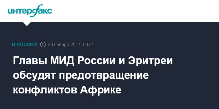 Главы МИД России и Эритреи обсудят предотвращение конфликтов Африке