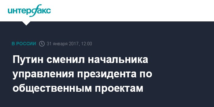 Москва. 31 января. INTERFAX.RU - Владимир Путин назначил начальником управления президента РФ по общественным проектам Сергея Новикова.