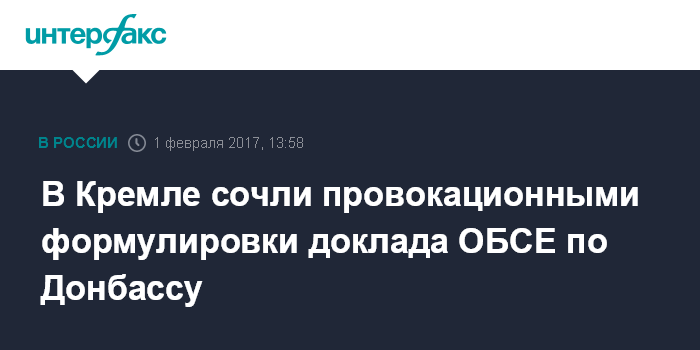 Москва. 1 февраля. INTERFAX.RU - В Кремле заявили, что не согласны с формулировками доклада ОБСЕ с ситуацией в Донбассе и считают их провокационными.