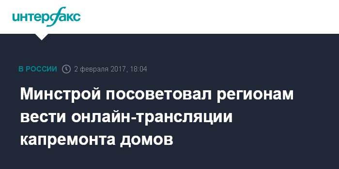 Минстрой посоветовал регионам вести онлайн-трансляции капремонта домов