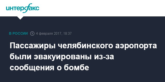 Москва. 4 февраля. INTERFAX.RU - Несколько сотен человек были эвакуированы из аэропорта в Челябинске днем в субботу из-за информации о минировании, которая оказалась ложной.