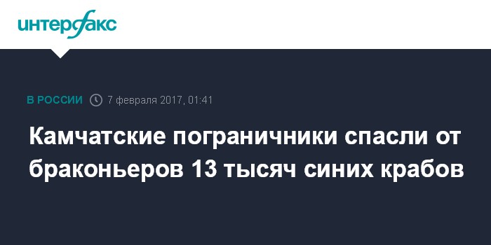 Москва. 7 февраля. INTERFAX.RU - Пограничники на Камчатке возбудили уголовное дело против капитана иностранного судна из-за незаконной добычи 13,5 тыс. особей синего краба, сообщает во вторник пресс-служба прокуратуры Камчатского края.