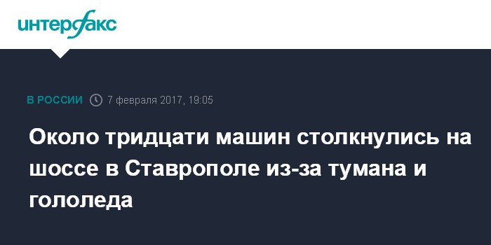 Москва. 7 февраля. INTERFAX.RU - Десять автоаварий с участием около 30 машин произошло вечером во вторник на Старомарьевском шоссе в Ставрополе, сообщает отдел безопасности дорожного движения краевого управления ГИБДД.