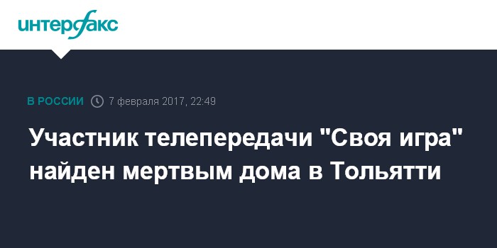 Участник телепередачи "Своя игра" найден мертвым дома в Тольятти