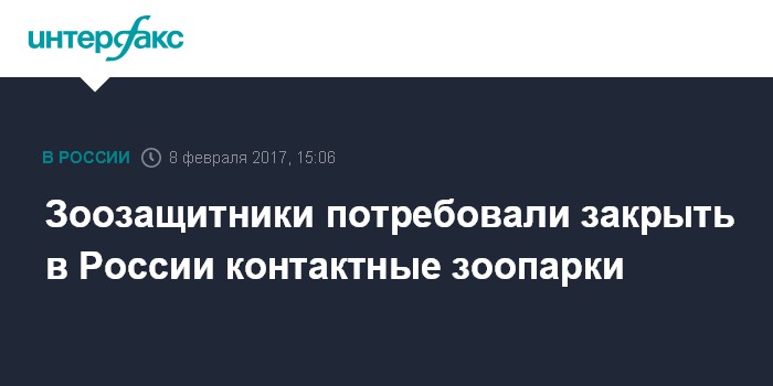 "Сегодня есть сети контактных зоопарков, где "зверушки как игрушки" - это небезопасно для людей, а для животных это чудовищно жестоко. И самое главное - это противозаконно: есть санитарно-технические правила, и запрещается размещение мест содержания животных вблизи торговых точек. Такие зоопарки надо закрывать", - сказала Новожилова на пресс-конференции в центральном офисе "Интерфакса" в среду.