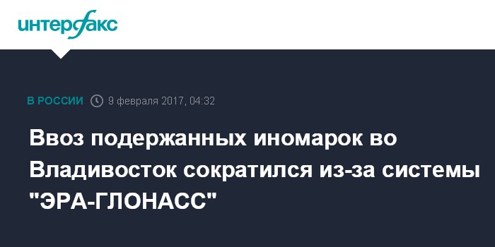 Москва. 9 февраля. INTERFAX.RU - Владивостокская таможня отмечает спад ввоза подержанных автомобилей после вступившего с 1 января требования об обязательном оснащении системой "ЭРА-ГЛОНАСС".