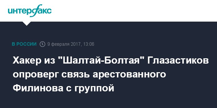 Москва. 9 февраля. INTERFAX.RU - Предположительный участник хакерской группы "Шалтай-Болтай" Александр Глазастиков заявил, что один из фигурантов уголовного дела "Шалтай-Болтая" Александр Филинов вряд ли имеет отношение к деятельности этой группы.