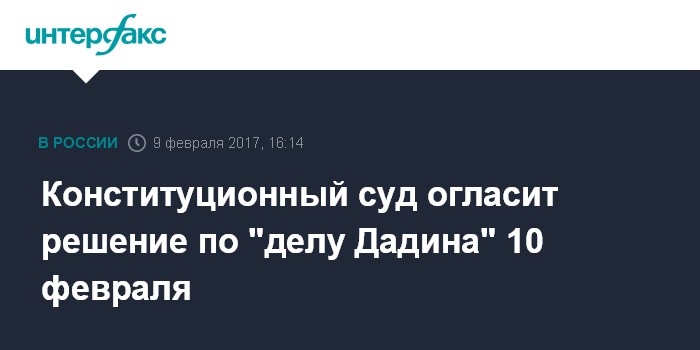 Москва. 9 февраля. INTERFAX.RU - Конституционный суд РФ в пятницу обнародует постановление по делу Ильдара Дадина, сообщила пресс-служба суда.