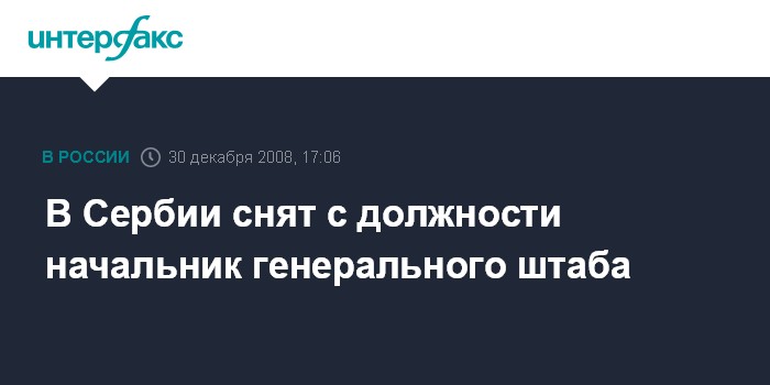 Москва. 30 декабря. INTERFAX.RU - Президент Сербии Борис Тадич во вторник принял решение об отстранении от должности начальника генерального штаба вооруженных сил Сербии Здравко Поноша, передает белградская независимая радиостанция "Б-92".