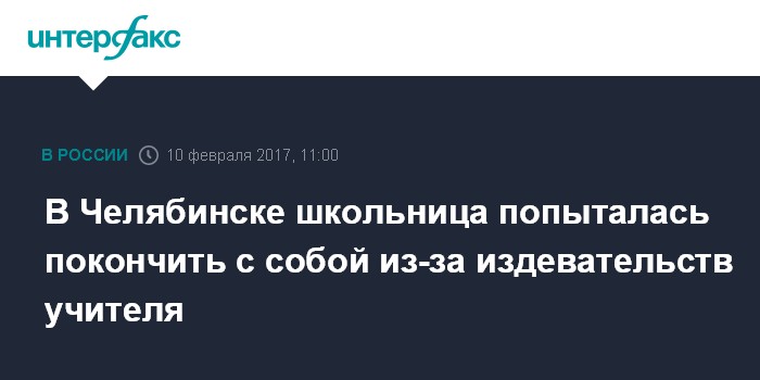 В Челябинске школьница попыталась покончить с собой из-за издевательств учителя