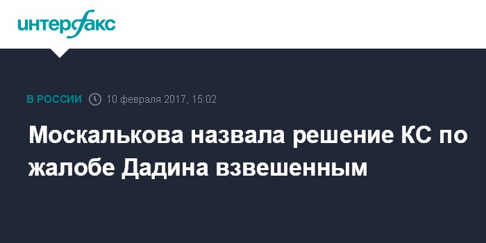 'Конституционный Суд РФ вынес взвешенное решение. Мнение Уполномоченного по правам человека в России в нем тоже в значительной мере нашло отражение", - сказала Москалькова, слова которой приводят в пресс-службе омбудсмена.