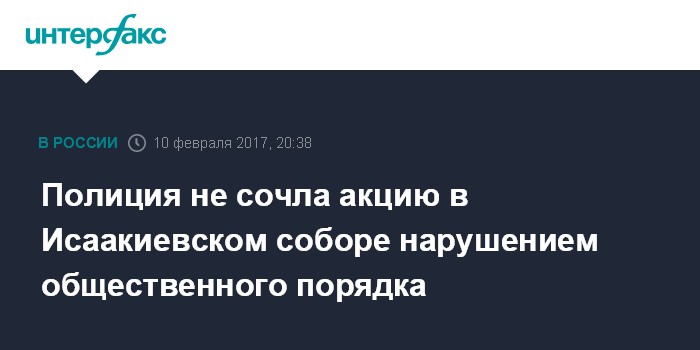 Полиция не сочла акцию в Исаакиевском соборе нарушением общественного порядка