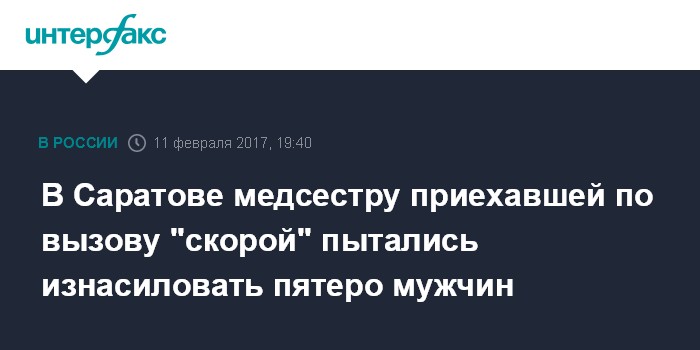 В свою очередь, Следственное управление СК России по Саратовской области сообщает, что инцидент произошел 11 февраля в квартире на улице Шелковичной. После приезда по вызову девушки-фельдшера приятели мужчины, которому стало плохо, начали делать ей предложения интимного характера. Об этом она пожаловалась в правоохранительные органы. По факту произошедшего проводится проверка.