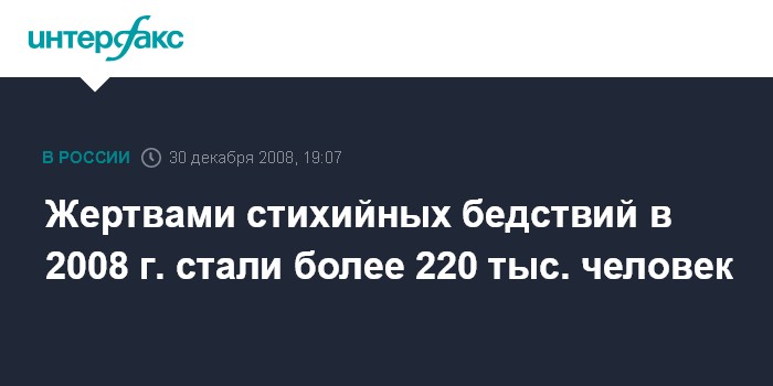 Жертвами стихийных бедствий в 2008 г. стали более 220 тыс. человек