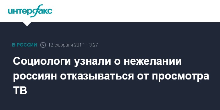 Москва. 12 февраля. INTERFAX.RU - Подавляющее большинство (93%) россиян смотрят телевизор, причем 67% делают это практически каждый день, и не смогут отказаться от ТВ в пользу других развлечений (62%), выяснили в фонде "Общественное мнение".