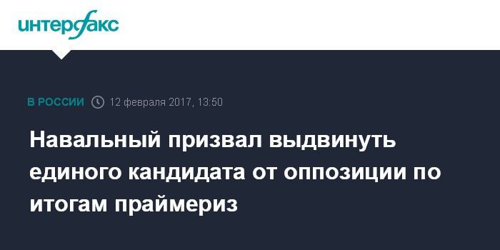 Москва. 12 февраля. INTERFAX.RU - Оппозиционер Алексей Навальный считает необходимым провести праймериз и выдвинуть единого кандидата от всех оппозиционных сил, включая парламентские партии.