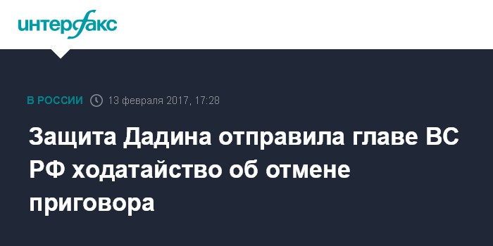 Москва. 13 февраля. INTERFAX.RU - Защита оппозиционного активиста Ильдара Дадина, осужденного к реальному сроку наказания за неоднократное нарушение правил пикетирования, просит председателя Верховного суда РФ об отмене приговора.