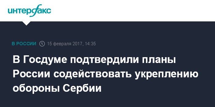 В Госдуме подтвердили планы России содействовать укреплению обороны Сербии
