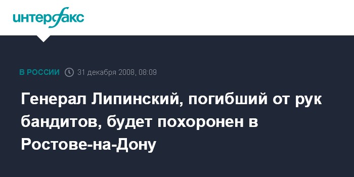 Генерал Липинский, погибший от рук бандитов, будет похоронен в Ростове-на-Дону