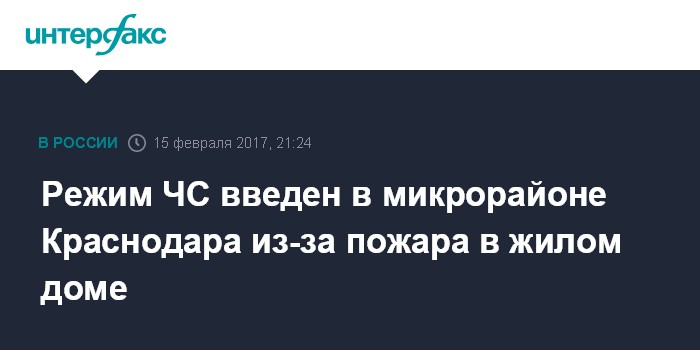 Москва. 15 февраля. INTERFAX.RU - Мэр Краснодара Евгений Первышов в среду вечером ввел режим локальной чрезвычайной ситуации (ЧС) в микрорайоне, где загорелся шестиэтажный жилой многоквартирный дом. Об этом сообщили агентству "Интерфакс" в пресс-службе администрации города.