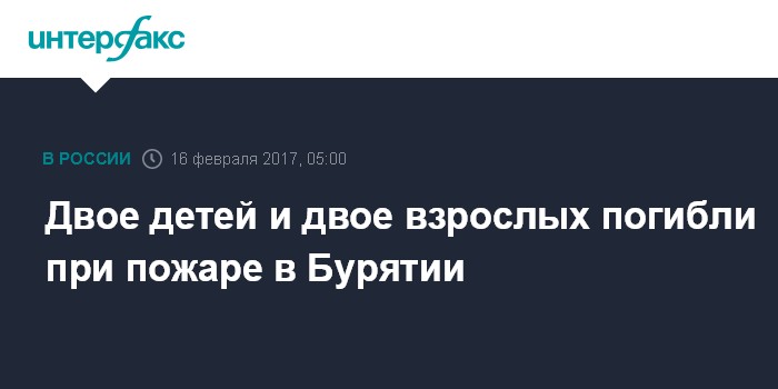 Москва. 16 февраля. INTERFAX.RU - Четыре человека, в том числе двое детей погибли во время пожара жилого дома в Улан-Удэ, сообщает в четверг пресс-служба республиканского главного управления МЧС.