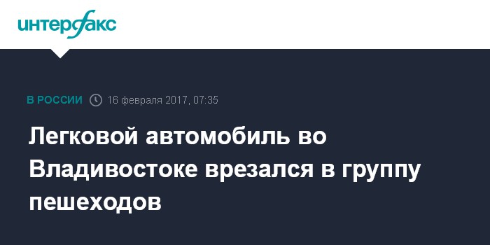 Москва. 16 февраля. INTERFAX.RU - Женщина за рулем мини-джипа во Владивостоке врезалась в группу людей на пешеходном переходе, проехав на красный свет, пострадали несколько человек, сообщает пресс-служба УМВД по Приморью.