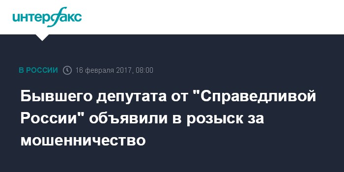 Бывшего депутата от "Справедливой России" объявили в розыск за мошенничество