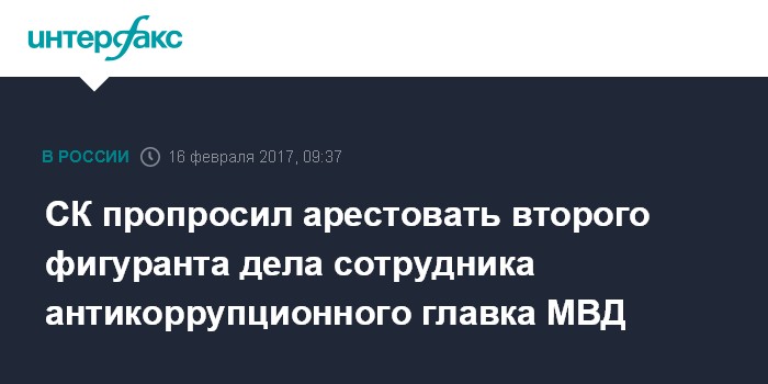СК пропросил арестовать второго фигуранта дела сотрудника антикоррупционного главка МВД