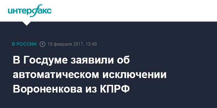 Москва. 16 февраля. INTERFAX.RU - Экс-депутат Госдумы Денис Вороненков автоматически перестал быть членом КПРФ после того, как получил гражданство другого государства, заявил в четверг первый вице-спикер Госдумы Иван Мельников.