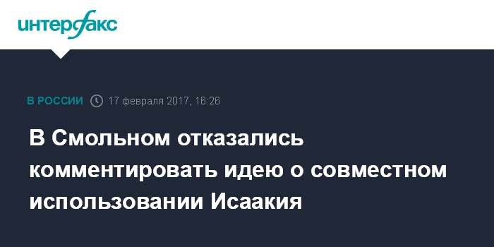Москва. 17 февраля. INTERFAX.RU - Власти Петербурга не комментируют появившуюся информацию о возможном компромиссном решении при определении судьбы Исаакиевского собора.