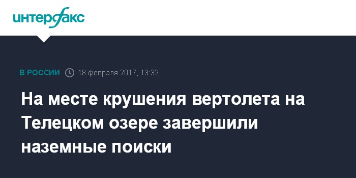 Москва. 18 февраля. INTERFAX.RU - Спасатели завершили наземные поиски вертолета "Робинсон", разбившегося над Телецким озером, сообщает пресс-служба главка МЧС по республике Алтай.