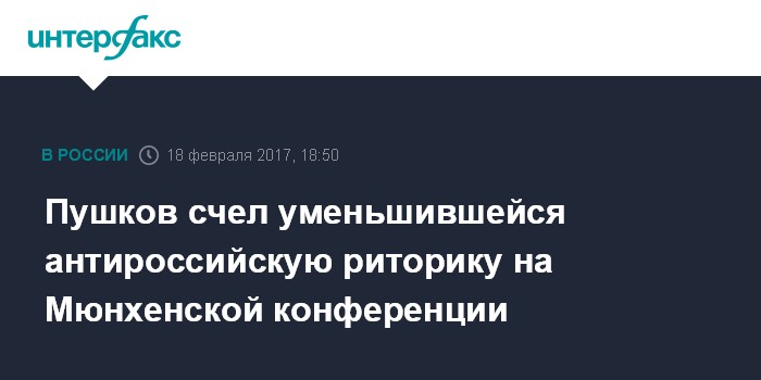 "На мой взгляд, несмотря на то, что в выступлениях Ангелы Меркель и вице-президента США Майкла Пенса содержались критические высказывания относительно России, я все же считаю, что эта конференция гораздо менее насыщена антироссийской риторикой, чем конференция прошлого года", - сказал Пушков "Интерфаксу" в субботу.