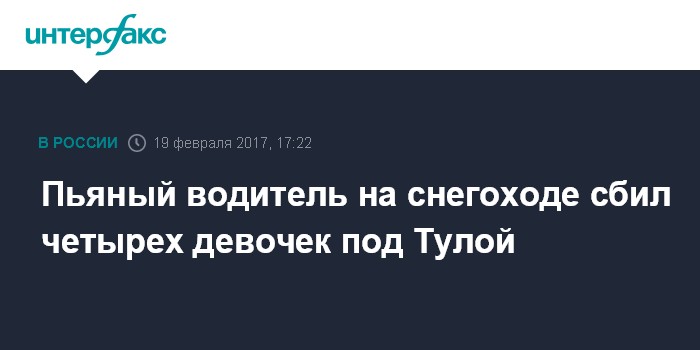 Москва. 19 февраля. INTERFAX.RU - Житель Московской области, управлявший снегоходом, сбил четырех девочек и скрылся с места происшествия в Куркинском районе Тульской области, сообщил "Интерфаксу" в воскресенье начальник пресс-службы областного УМВД Андрей Ярцев.