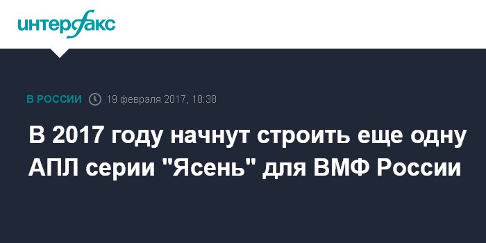 Москва. 19 февраля. INTERFAX.RU - Очередная атомная подлодка проекта 885 "Ясень" будет заложена в 2017 году, сообщил главнокомандующий Военно-морским флотом России адмирал Владимир Королев.