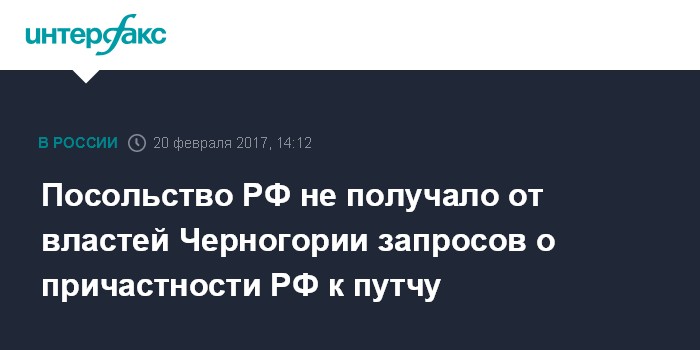 Посольство РФ не получало от властей Черногории запросов о причастности РФ к путчу