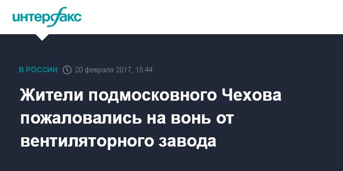 Москва. 20 февраля. INTERFAX.RU - Минэкологии Московской области взяло на контроль ситуацию со зловонием, исходящим с территории вентиляторного завода в Чехове: объектами проверки стали шесть предприятий-арендаторов, сообщает пресс-служба ведомства.