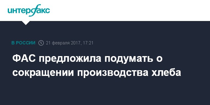 Москва. 21 февраля. INTERFAX.RU - Систему заказа хлеба ритейлерами нужно изменить, чтобы избежать возврата большого объема продукции, считают в Федеральной антимонопольной службе.