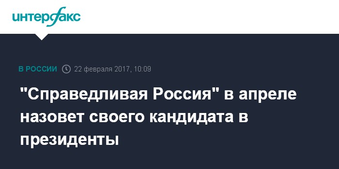 "Справедливая Россия" в апреле назовет своего кандидата в президенты