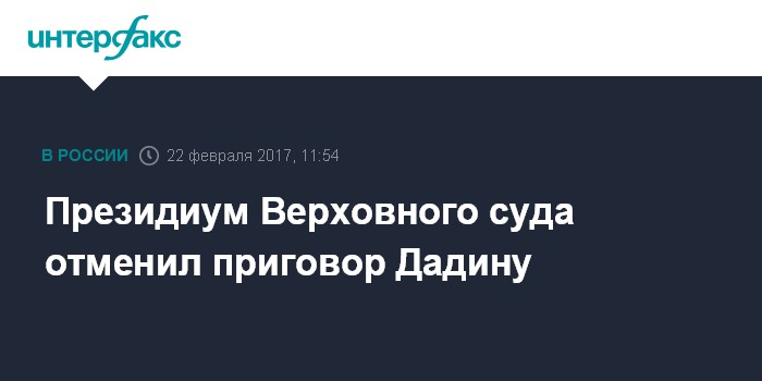 Москва. 22 февраля. INTERFAX.RU - Президиум Верховного суда (ВС) РФ отменил приговор оппозиционному активисту Ильдару Дадину, осужденному к реальному сроку наказания за неоднократное нарушение правил пикетирования, передает корреспондент "Интерфакса".