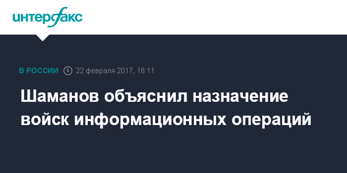 "Сегодня ряд вызовов перенесены в так называемую киберсферу, и, по существу, сегодня идет информационное противоборство как составная часть общего противоборства. Исходя из этого Россия предприняла усилия по формированию структур, которые этим делом занимаются", - сказал Шаманов "Интерфаксу" в среду.
