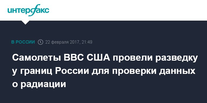 Москва. 22 февраля. INTERFAX.RU - Два самолета ВВС США провели в среду радиационную и радиотехническую разведку над Баренцевым морем вблизи побережья Мурманской области в связи с появившимися данными о повышенном содержании радиоактивного йода-131 в атмосфере ряда европейских стран, свидетельствуют данные западных порталов, отслеживающих полеты военной авиации.