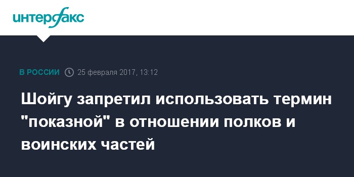 Москва. 25 февраля. INTERFAX.RU - Термин "показная воинская часть" исключен из лексикона российской армии, заявил министр обороны РФ генерал армии Сергей Шойгу.