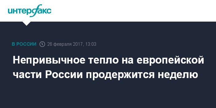Москва. 26 февраля. INTERFAX.RU - Аномально теплая погода установилась на всей территории европейской части России, высокий температурный фон продержится как минимум до конца следующей недели, заявил "Интерфаксу" директор Гидрометцентра России Роман Вильфанд.