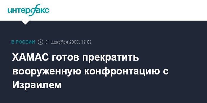 "Машааль в ответ на обращение министра (главы МИД РФ Сергея Лаврова - ИФ) заявил о готовности прекратить вооруженную конфронтацию, но в увязке со снятием блокады Сектора Газа", - говорится в сообщении МИД РФ, распространенном в среду. В документе отмечается, что 31 декабря состоялся телефонный разговор Лаврова и Машааля.