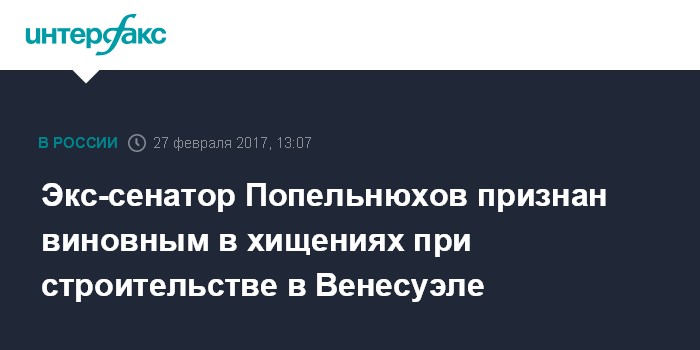 Экс-сенатор Попельнюхов признан виновным в хищениях при строительстве в Венесуэле